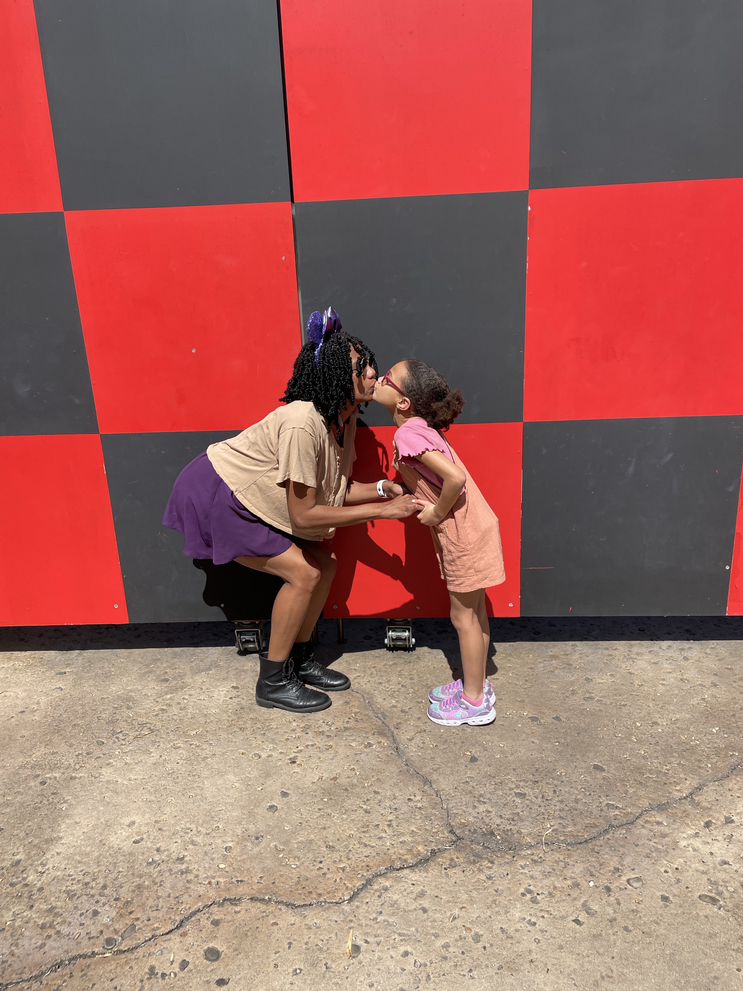 Disney World Photo Spots - Checker Wall at the exit of Toy Story Mania | ordinarilyextraordinarymom #hollywoodstudios #disneyworldphotos #disneyphotos #disneyphotospots #disneyphotoideas #disneyphotoideaskids