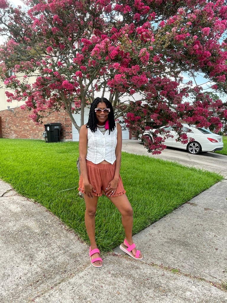 My outfit usually starts neutral, and I think to myself. “You know what would make this outfit even better?…PINK!” 😂😂😂🤷🏽♀️