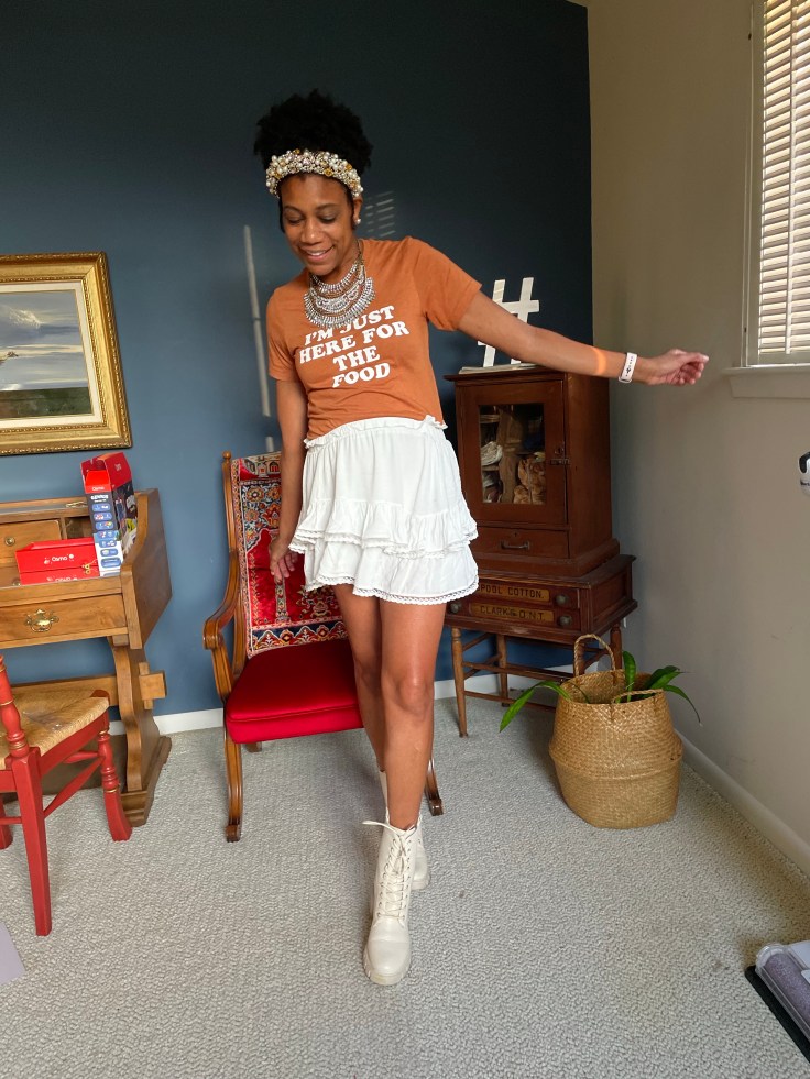 • Pairing a cropped tee with a tiered mini is a cute way to style an outfit | ordinarilyextraordinarymom #graphictees #graphicteeoutfit #graphictshirt #graphictshirtoutfit#stylingagraphictee