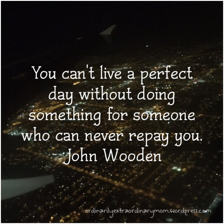 • You can't live a perfect day without doing something for someone who can never repay you. ~ John Wooden | ordinarilyextraordinarymom #givingback #giveback #kindness #christianity #inspiration #motivation #angels #johnwooden #raok #randomactsofkindness